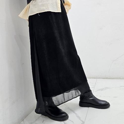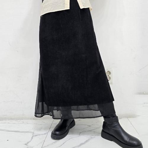 [샵앤]여성 세련된 밑단 시스루 안감 간절기 롱 스커트 SIU-WSK-4815-블랙