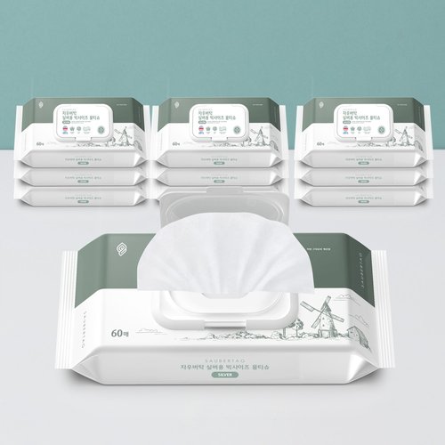 자우버탁 와이드빅사이즈실버용 물티슈(60매x10개)