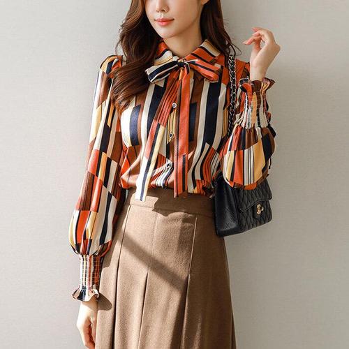 [스타일온미][루이스엔젤] 알리노 패턴 타이SET 스모킹 셔링 블라우스