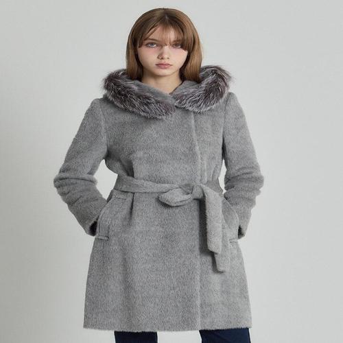 르오트 후드 폭스퍼 벨티드 알파카 울 롱코트