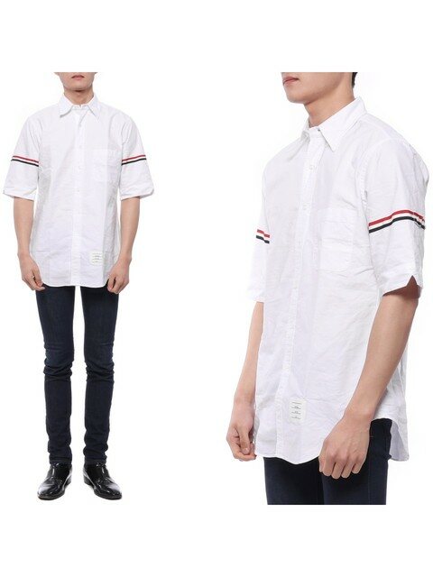 [톰 브라운] 23SS 남성 삼선 암밴드 반팔 셔츠 (MWS242A 06177 100 23S)