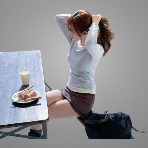[옷자락] 여성 앙고라 컬러 배색 레이어드 슬림 티셔츠