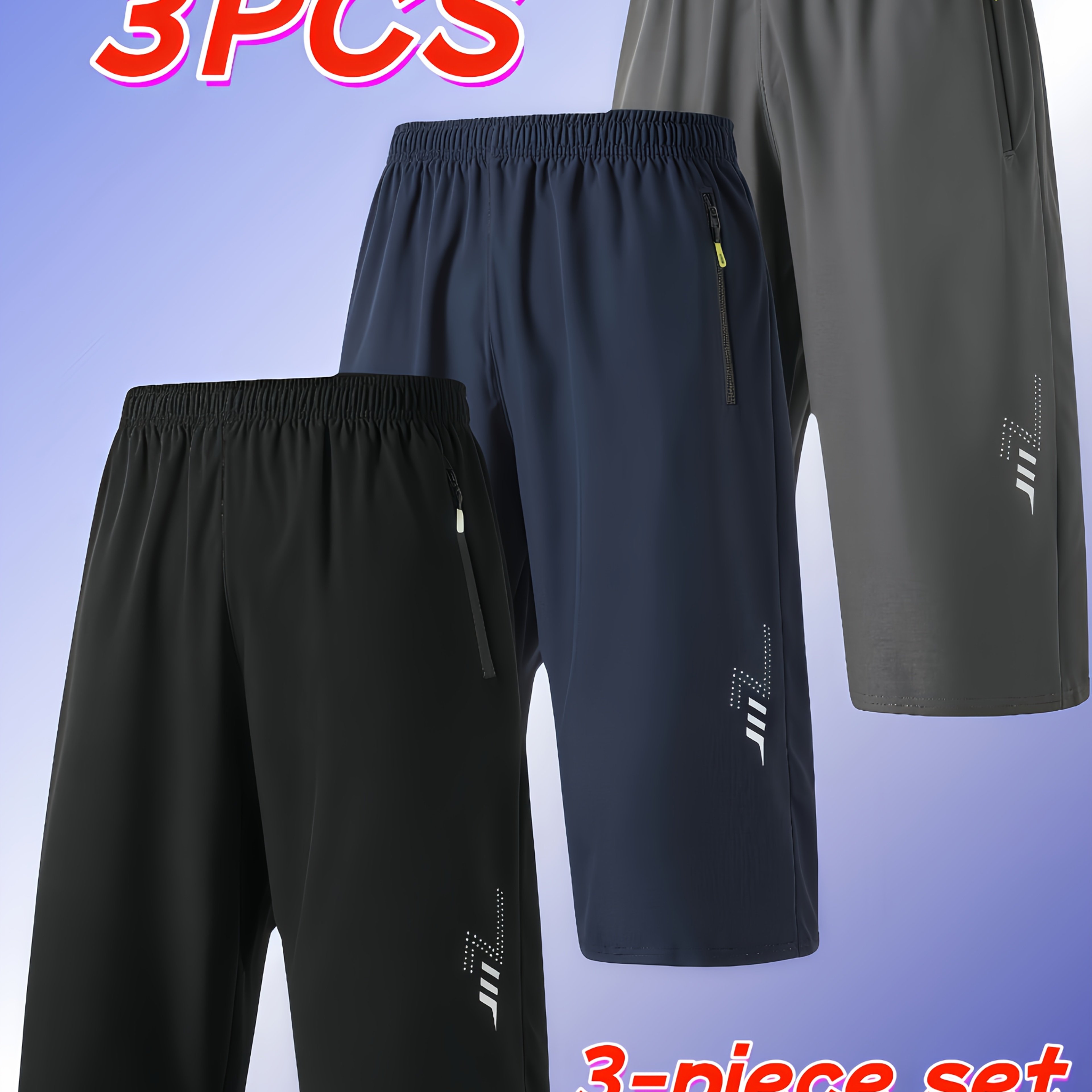 TEMU 남성용 여름 캐주얼 조거 쇼츠 3개 세트 - 통기성 좋고 가벼운 소재, 지퍼 포켓 및 조절 가능한 드로스트링 허리, 러닝/피트니스/야외 활동용, 모던 애슬레틱 웨어, 편안한 핏