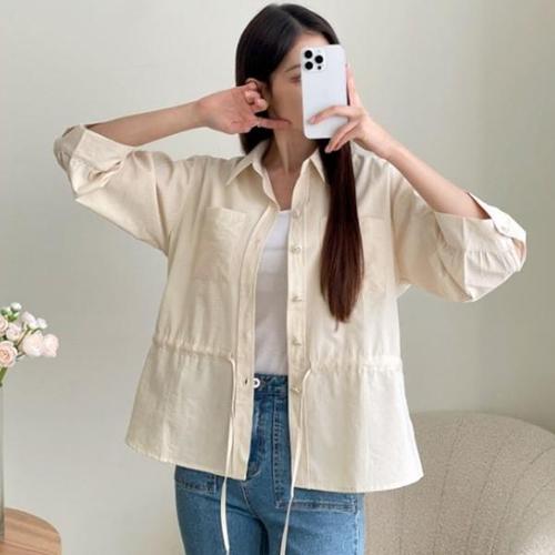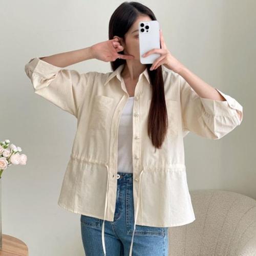 [옷자락]여자 칠부남방 사파리 야상 허리조절 셔츠