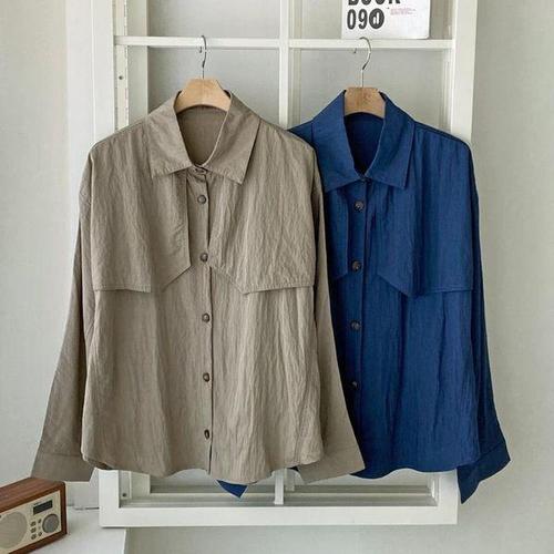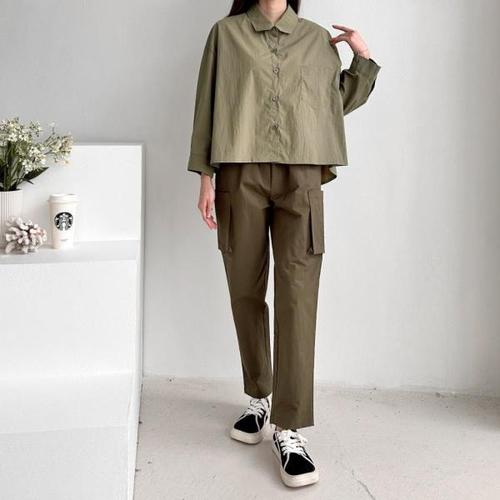 [다잇템]여자 야상남방 바스락 루즈핏 카키색 셔츠