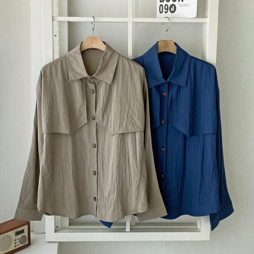 [옷자락] 여자 비스코스 날개 야상 잔주름 여유핏 셔츠 남방