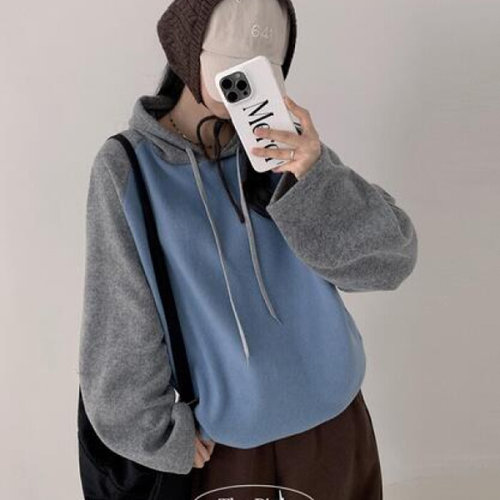 더핑크 / 드본 오버핏 배색 나그랑 양기모 후드티