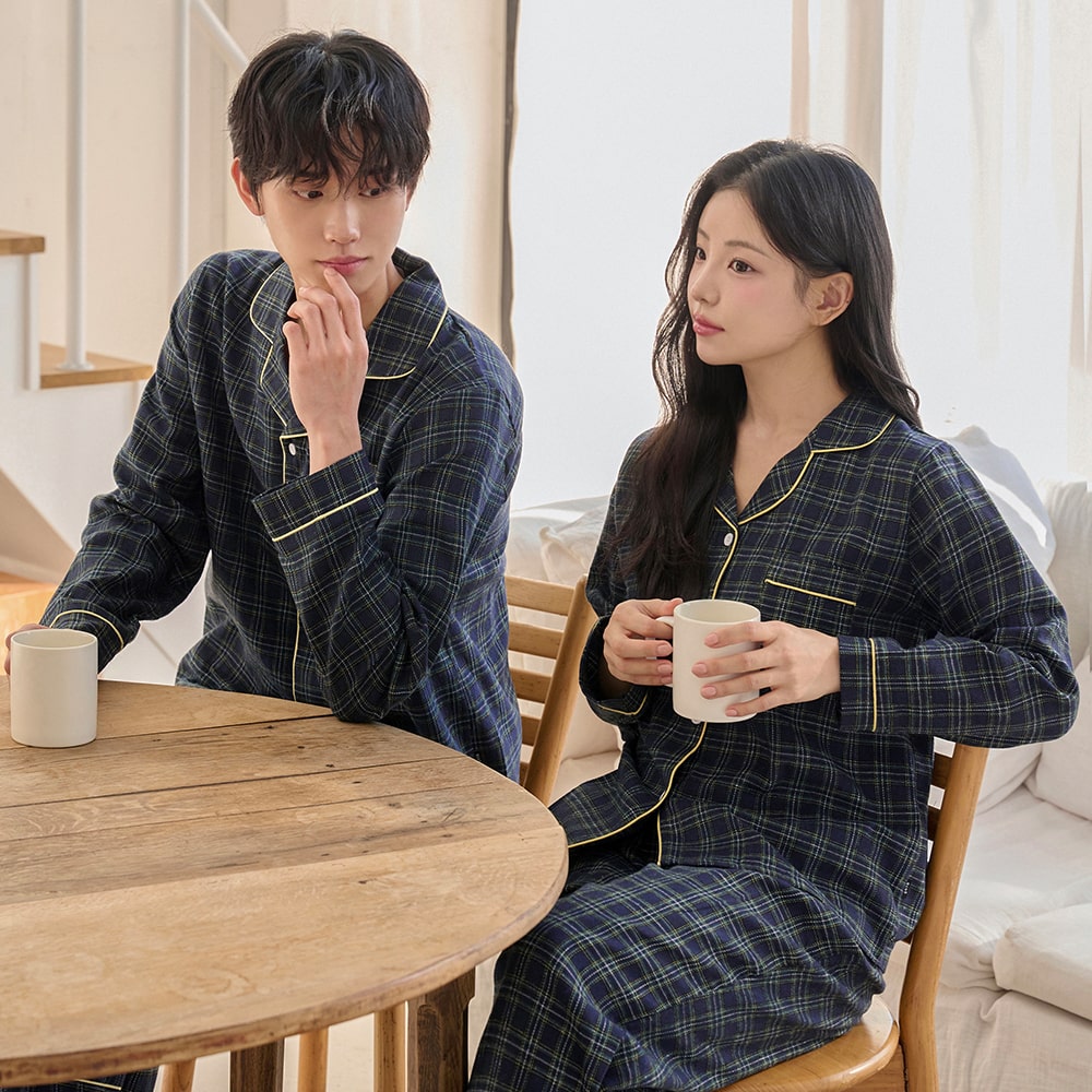 무드 인 체크 남녀 긴팔 잠옷세트 커플 파자마 홈웨어
