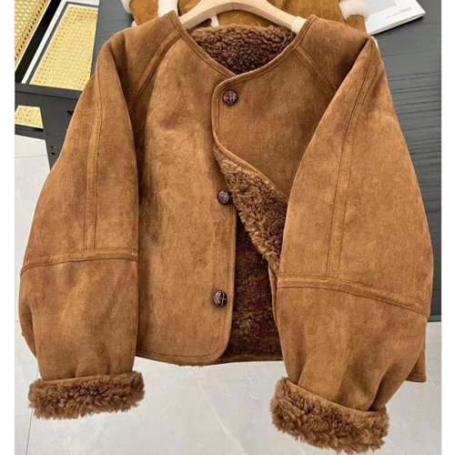 [BZJLGQBO_4C]러블리 떡볶이 단추 뽀글이 양털 자켓