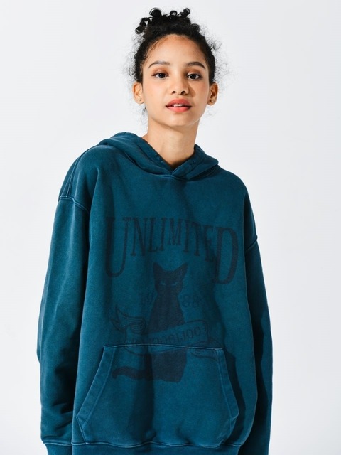 [바쥬비쥬] 언리미티드 캣 피그먼트 스웻셔츠_블루 그린
