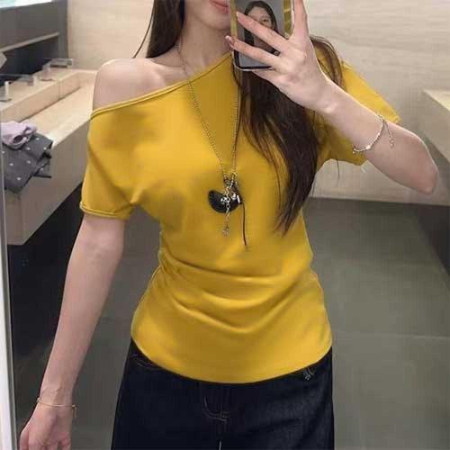 반팔티셔츠 골지티 숄더 언발티셔츠 하이틴룩 섹 WFKPDL7