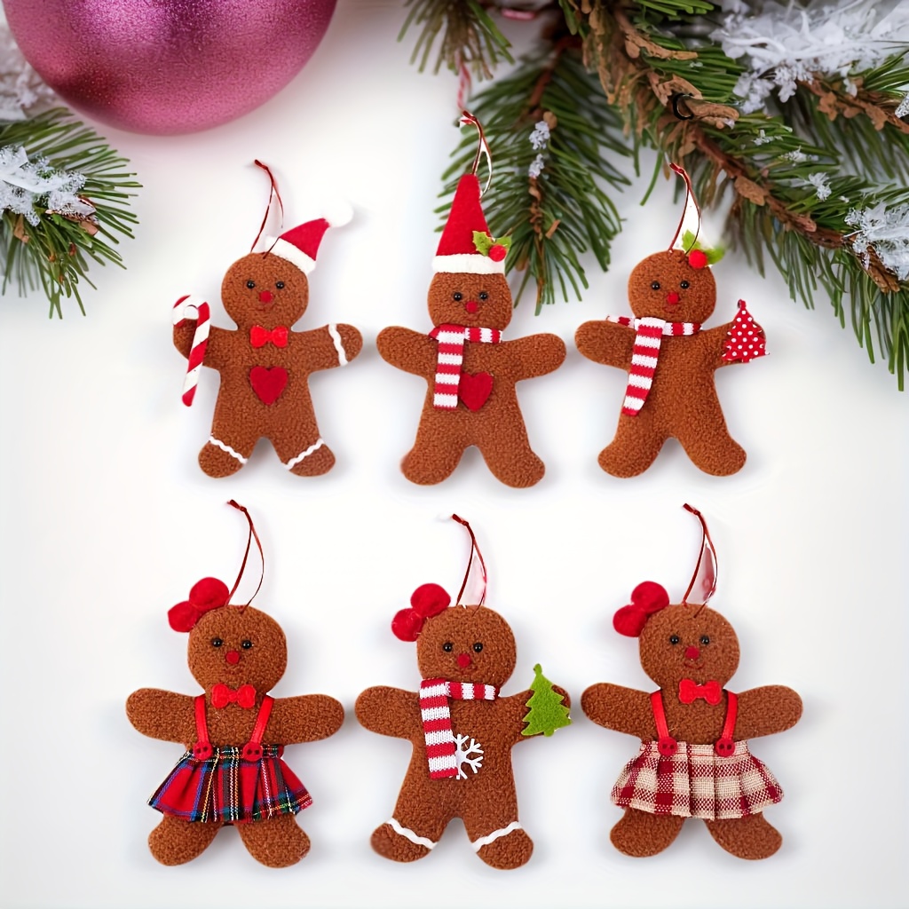 TEMU 남자와 노움을 위한 6개 조각 생강빵 크리스마스 장식품 - 전통 폴리에스터 나무, 벽난로, 문, 창문용 매달리는 장식 - 크리스마스, 추수감사절, 새해를 위한 축제적인 장식 | 기발한 생강빵 장식 | 매력적인 축제 장식품, 생강빵 크리스마스 장식