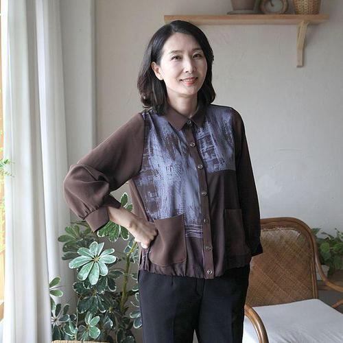 [쉬즈마담]T57413 감성프린팅 양포켓 블라우스 50대 엄마옷