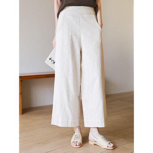 [애비뉴투지]엄마옷 린넨 코튼 허리밴딩 여성 여름 크랍 9부 통바지 P08545