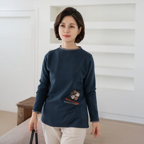 [엄지척]라운드넥 할머니 반폴라 티셔츠 기모 엄마 겨울 융_19646305_667501