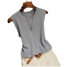 엘쏘 여성용 파스텔 골지 라운드 민소매 티셔츠