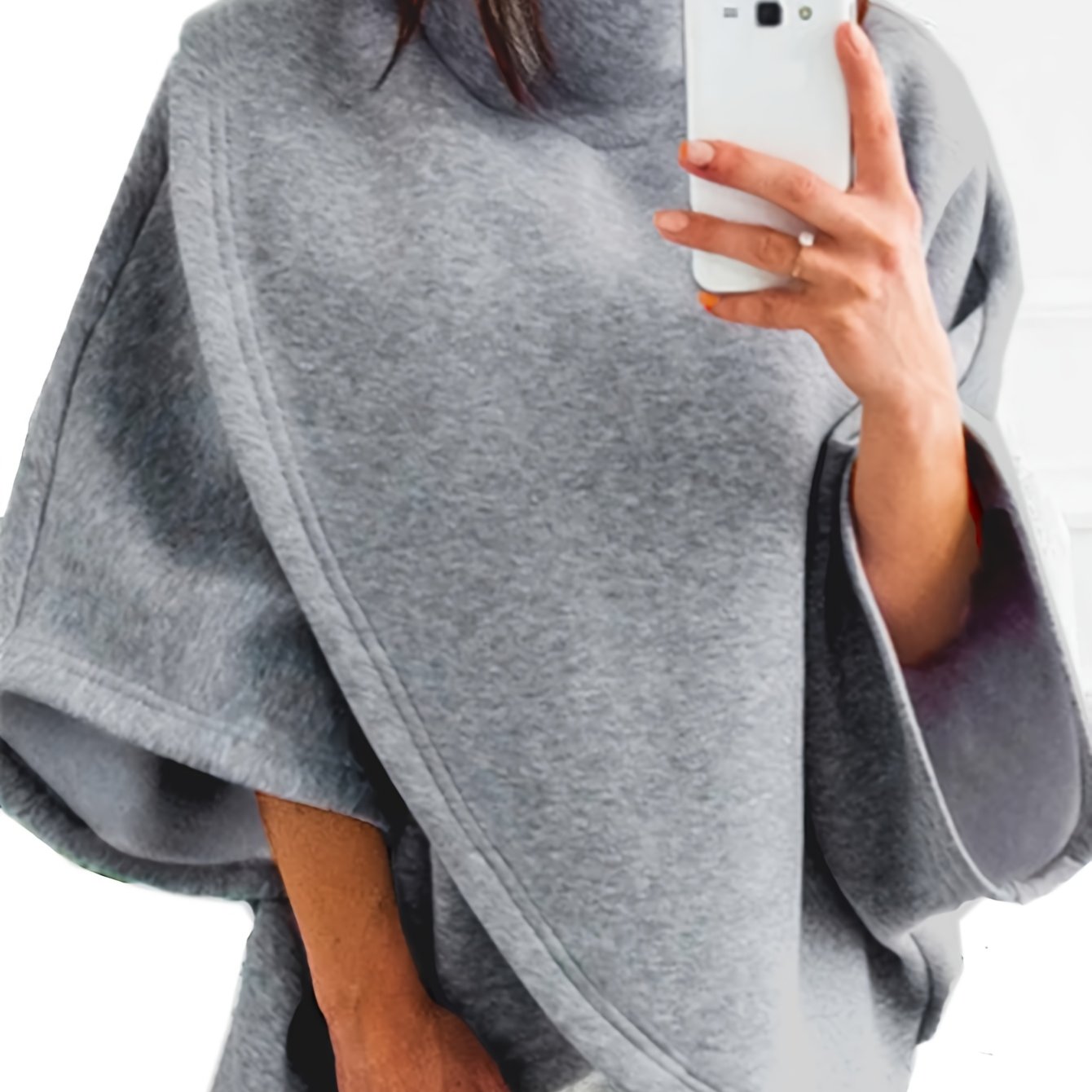 TEMU 여성용 시크한 비대칭 밑단 블라우스 - 우아한 오피스부터 파티까지, 논스트레치 구조 원단, 가을/겨울 필수 아이템 (그레이/블랙/화이트/베이지/브라운/블루), 세탁기 사용 가능 여성 의류, 하이넥 디자인, 미세 텍스처 패턴