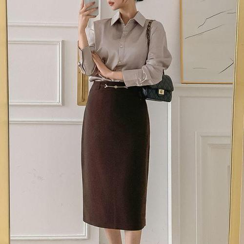 [옷자락] 여자 체인 브릿지 H라인 가을하객룩 출근 미디 스커트