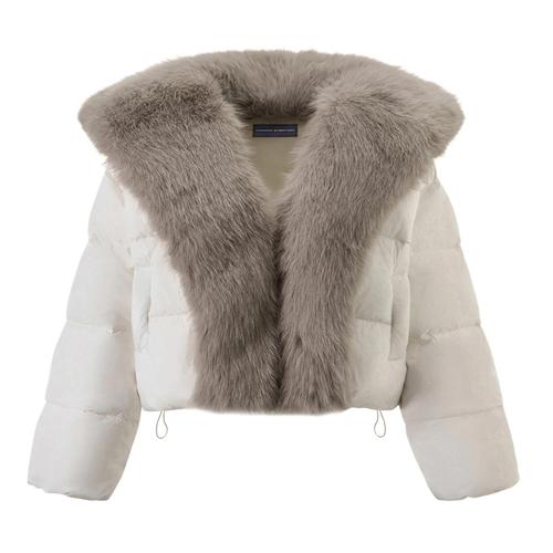 [르뚜앙]덤핑 겨울 크롭 퍼자켓 화이트 블랙 브라운 에코퍼 페이크퍼 숏코트 노카라 하객룩 파티룩