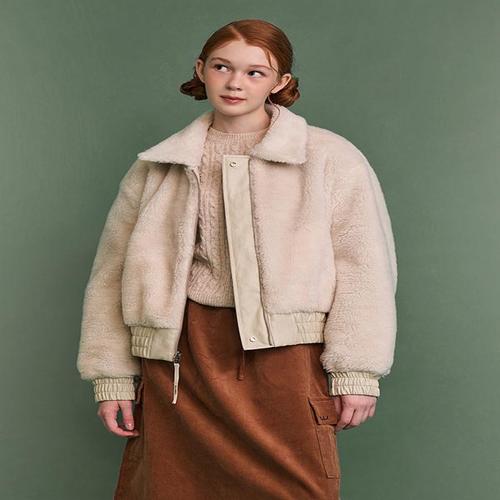 [르뚜앙]대풍 겨울 크롭 퍼 자켓 아우터 카멜 브라운 아이보리 노카라 숏자켓 하객룩 파티룩 에코퍼 페이..