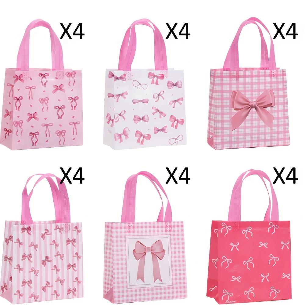 TEMU 24개입 리본 장식 귀여운 논웨븐 선물백 - 튼튼한 손잡이, 넉넉한 파티 선물 가방, 여성용, 생일, 결혼식, 베이비샤워, 파티 선물, 웨딩 파티 선물, 선물 포장용