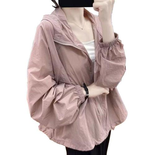 [에이치플러스몰]여성 여름 시스루 초경량 오버핏 후드 바람막이 점퍼