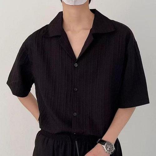 [셀러허브_여성트랜드패션]시원한셔츠 여름셔츠 플리츠 남성 오픈카라 반팔셔츠