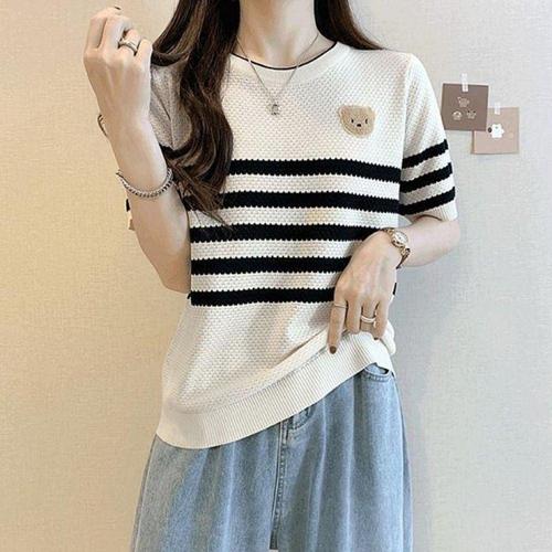 여성용 여름 캐주얼 곰인형 그래픽 티셔츠 반팔 WFL9CFT