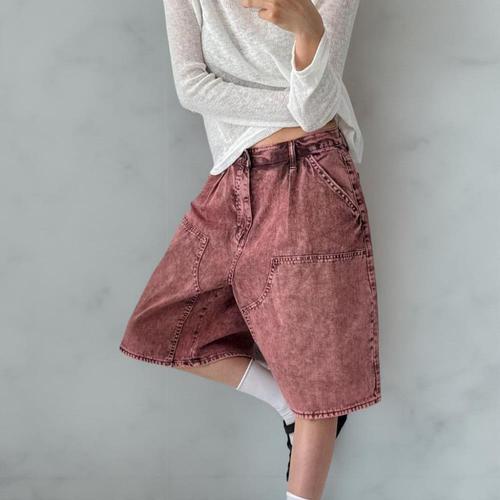 [옷자락]남녀공용 빈티지 피그먼트 절개 반바지 여름 청바지