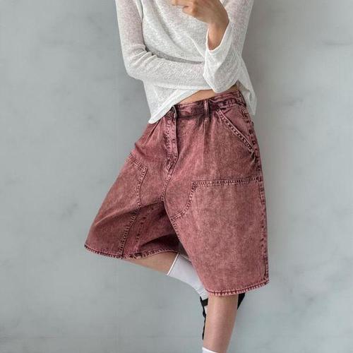 [문에이블]문에이블 여자 여성 여름 밴딩 입술포켓 와이드 버뮤다 데님 청 반바지 데일리 캐주얼 팬츠