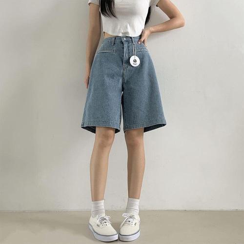 TEMU 여성용 5부 청반바지 여름 데일리 얇은 하이웨이스트 루즈핏 캐주얼 데님 반바지