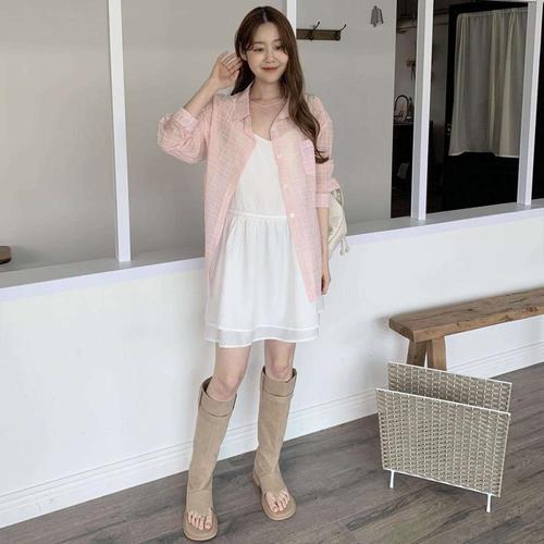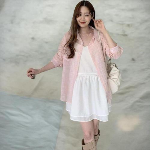 마이티 시스루 체크남방 자외선차단 루즈핏 벌룬소매 셔츠 여름 살안타템 (4color)