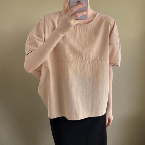 보니제이 / 라운드 반팔 시어서커 블라우스 지지미 루즈핏 여름