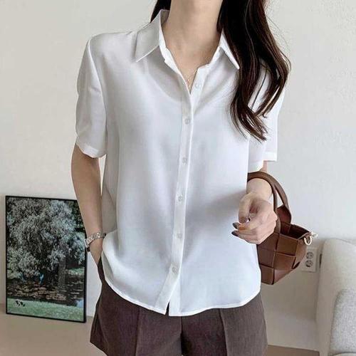 [신상오픈런]여성 여름 시스루 루즈핏 카라넥 기본 셔츠 블라우스