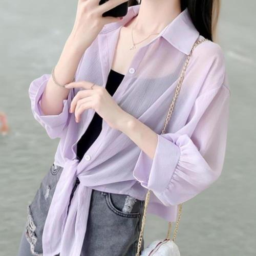 [신상오픈런]여성용 여름 시스루 오버핏 망사 셔츠 블라우스