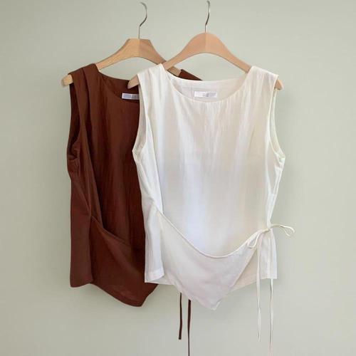 |KSH3ED8|여성 드레이프 사이드 리본 트임 여름 나시 블라우스