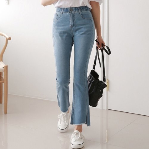 H스타일(CC)HS-23청스판통밴딩절개부츠컷 여름 여성 청바지 부츠컷 나팔 슬랙스