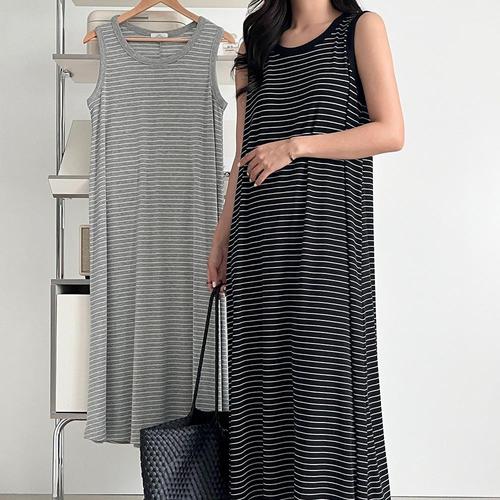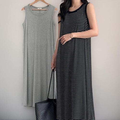 [셀러허브_여성트랜드패션]ONM 여자 스트라이프 나시 롱원피스 H라인 여름원피스