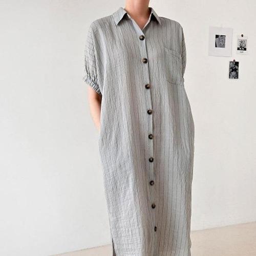 besteffie 베이직 여성 여름 긴기장 원피스 반팔 캐주얼 롱 드레스 스트라이프 쉬폰 H라인 루즈핏 컴포트핏 여자옷 K78