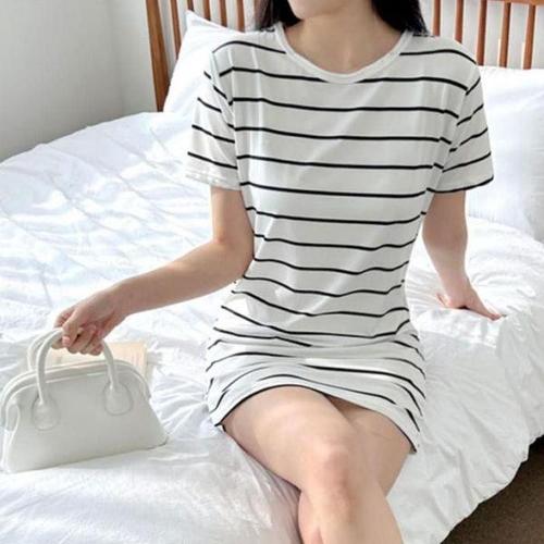 [셀러허브_여성트랜드패션]ONM 반팔 원피스 여름 여성 미니 줄무늬 홈웨어