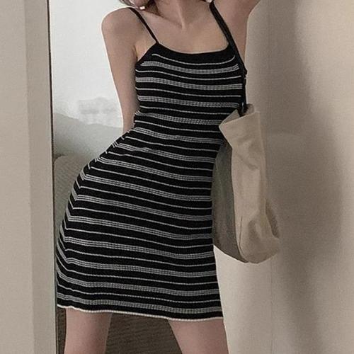 여성 휴양지 스트라이프 여름 미니 원피스 WON-WDR-W6AAFCB