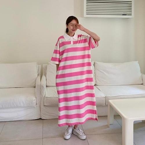 [신상오픈런]|CCO4955|스날리 썸머 여성 긴원피스 카라 줄무늬 데일리_18169426_597559