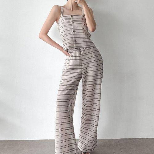 |KSD25FE|여성 여름 스트라이프 나시 시스루 부츠컷 세트