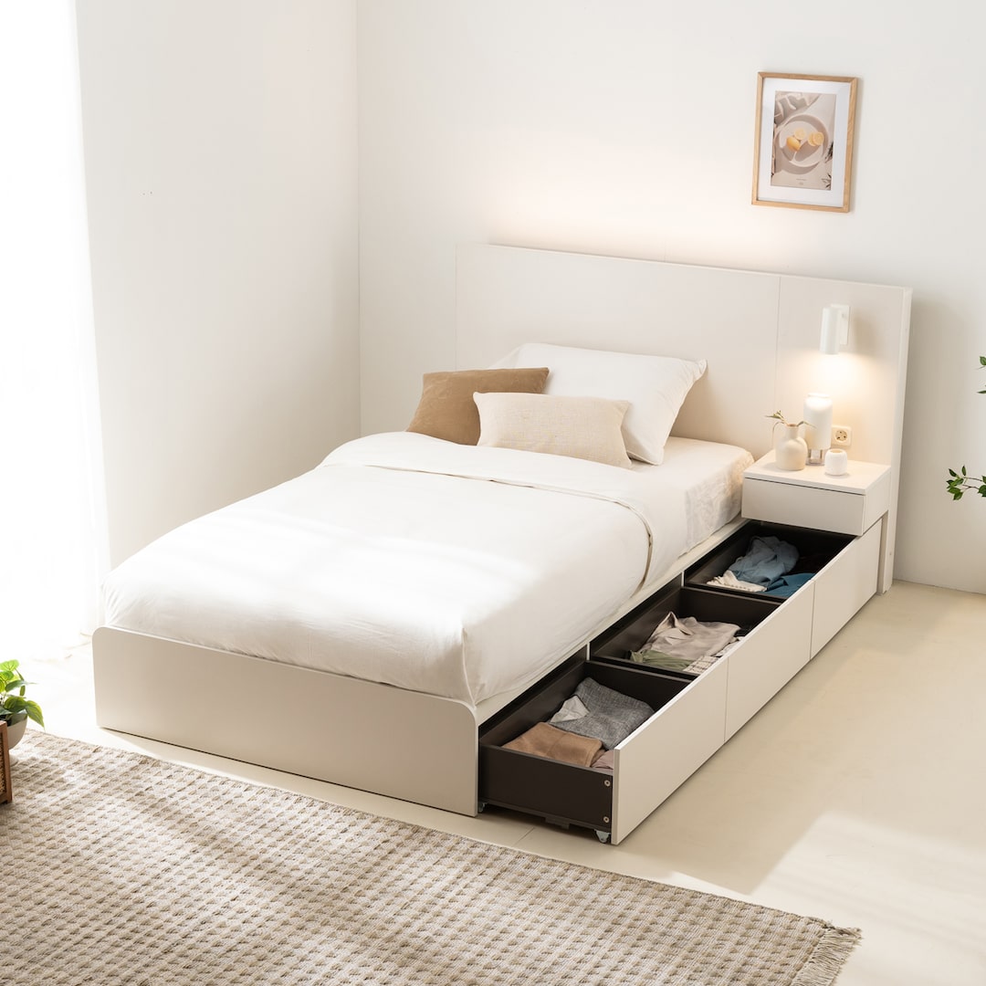 삼익가구 태리 LED 4단 수납 원목 침대 7존 독립스프링 매트리스-슈퍼싱글)_착불