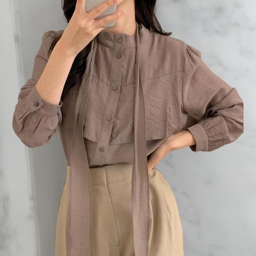 여성 가을 블라우스 긴팔 정장 셔츠 캐주얼 긴팔 남방 카라넥 여성 스러운 티셔츠HF