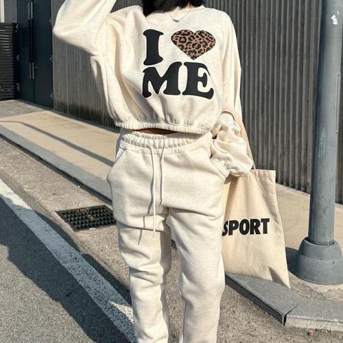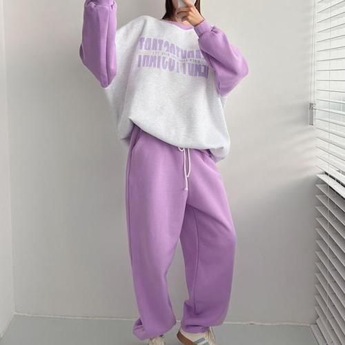 상상그이상 여성용 국내제작 레터링 기모 맨투맨 조거팬츠 투피스 2PCS 세트 데일리룩