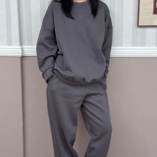 여성 캐주얼 기모 맨투맨 +조거 팬츠 투피스 루즈핏 가을겨울 트레이닝복 세트