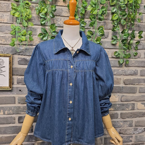 퐁당 / 귀욤 셔링 카라 청 남방 셔츠 블라우스