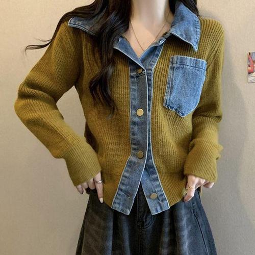 [모노무드]LMO 모던 우먼 세련된 두툼 청 셔츠칼라스웨터 니트집업 카키