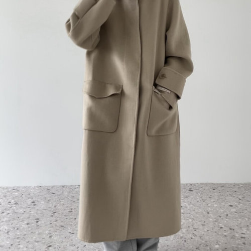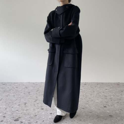 여자 겨울 모직 루즈핏 카라 클래식 롱코트_3